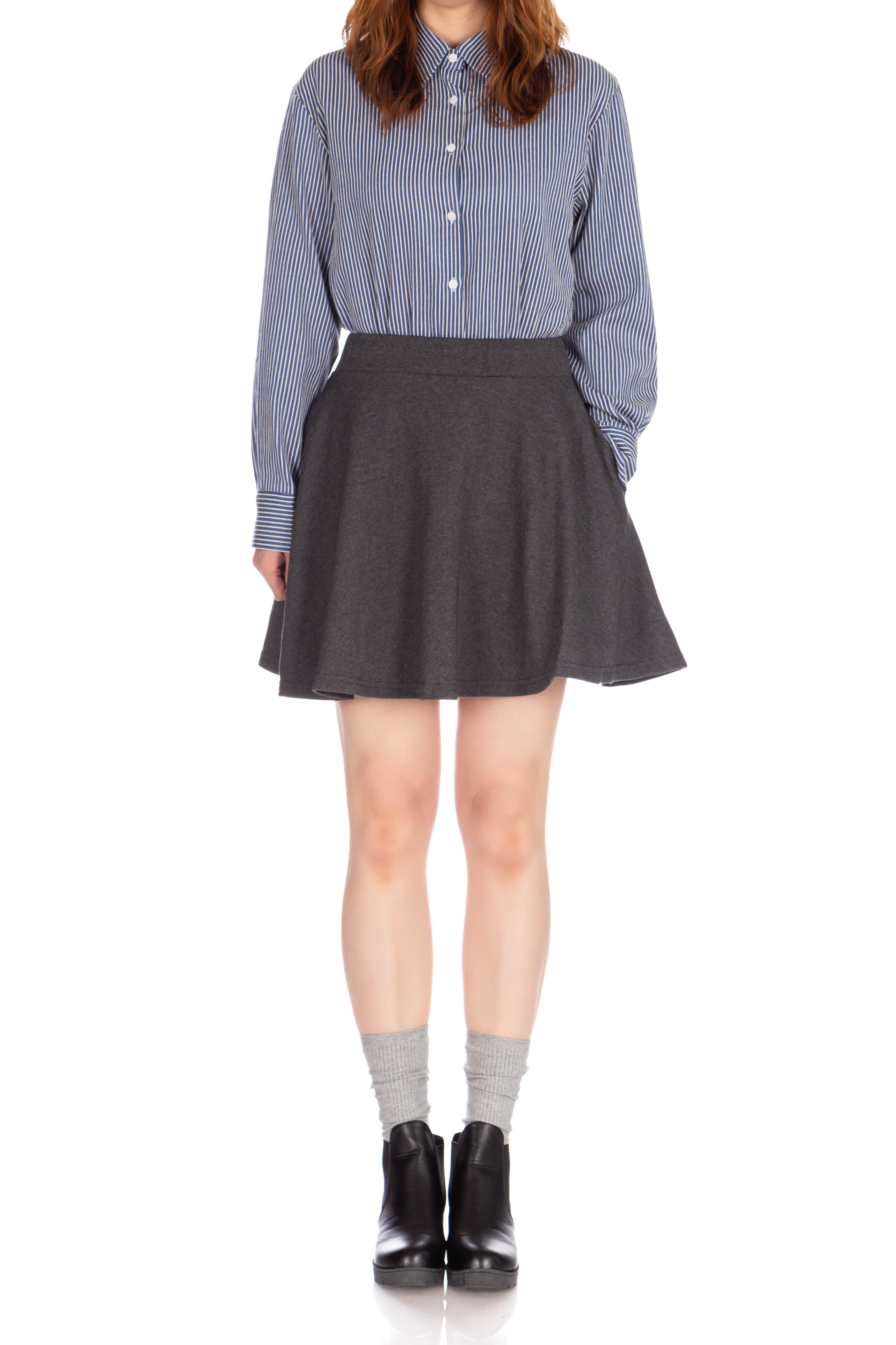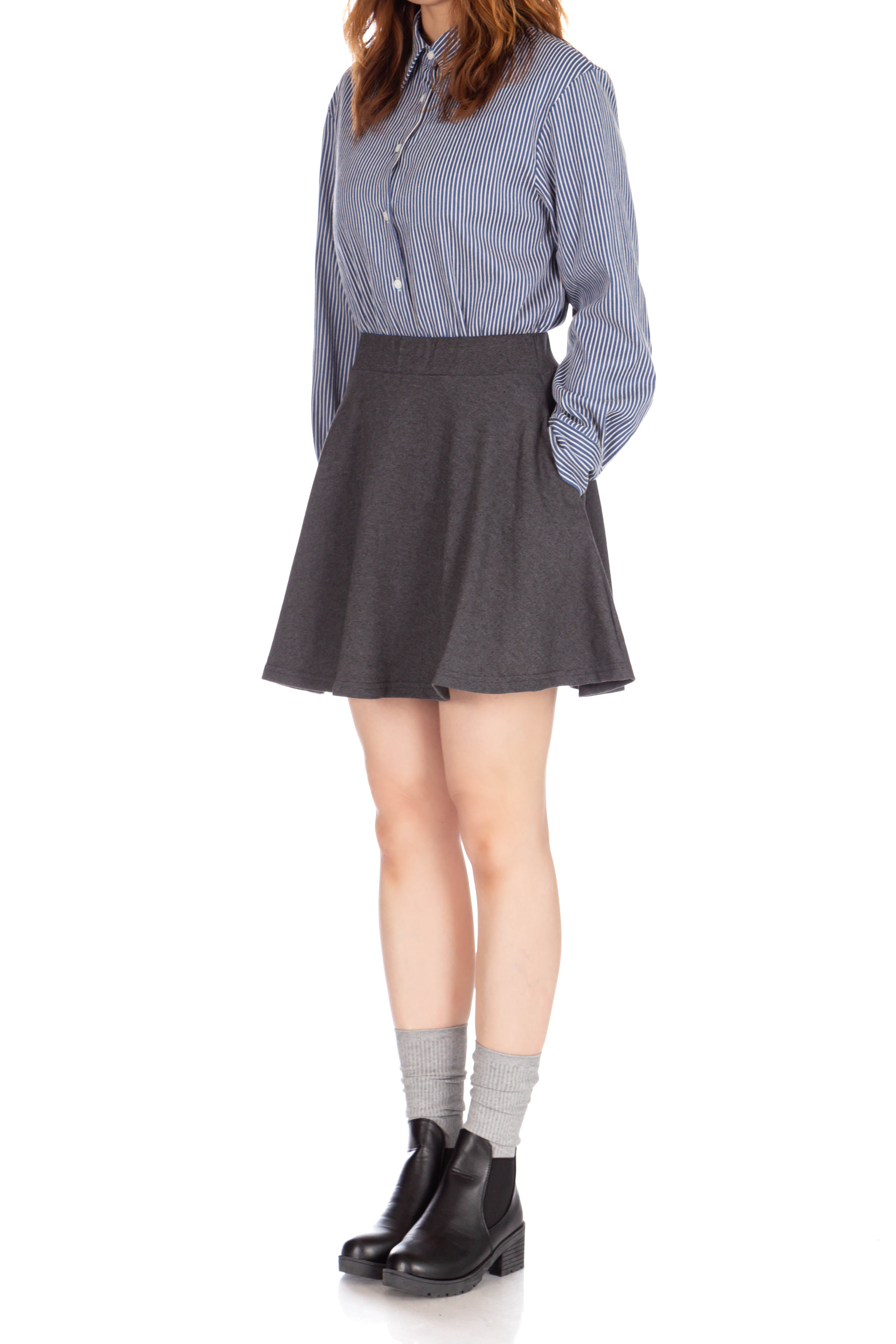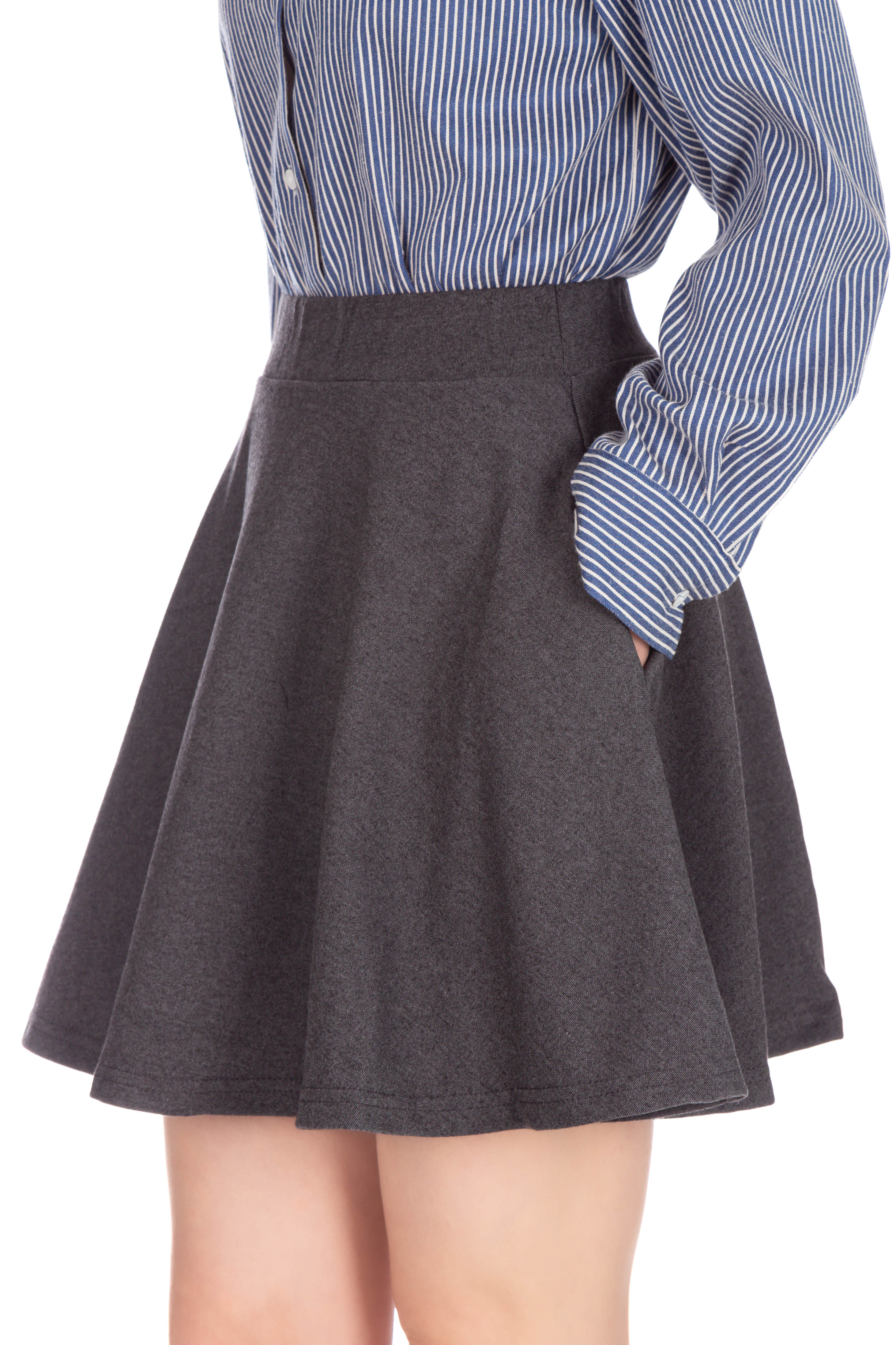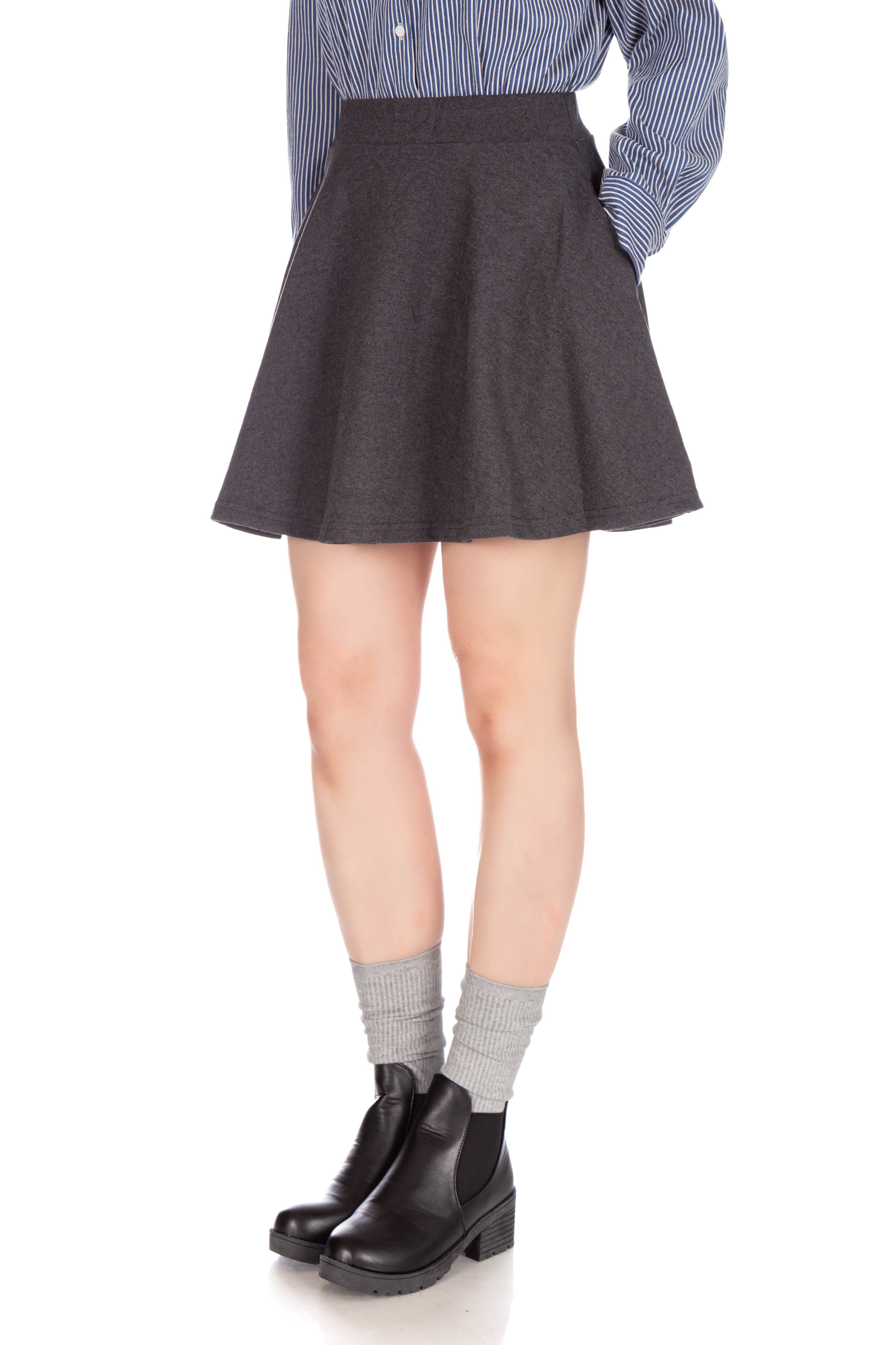 [With Pockets] Basic Solid Stretchy Cotton High Waist A-line Flared Skater Mini Skirt_Charcoal Gray